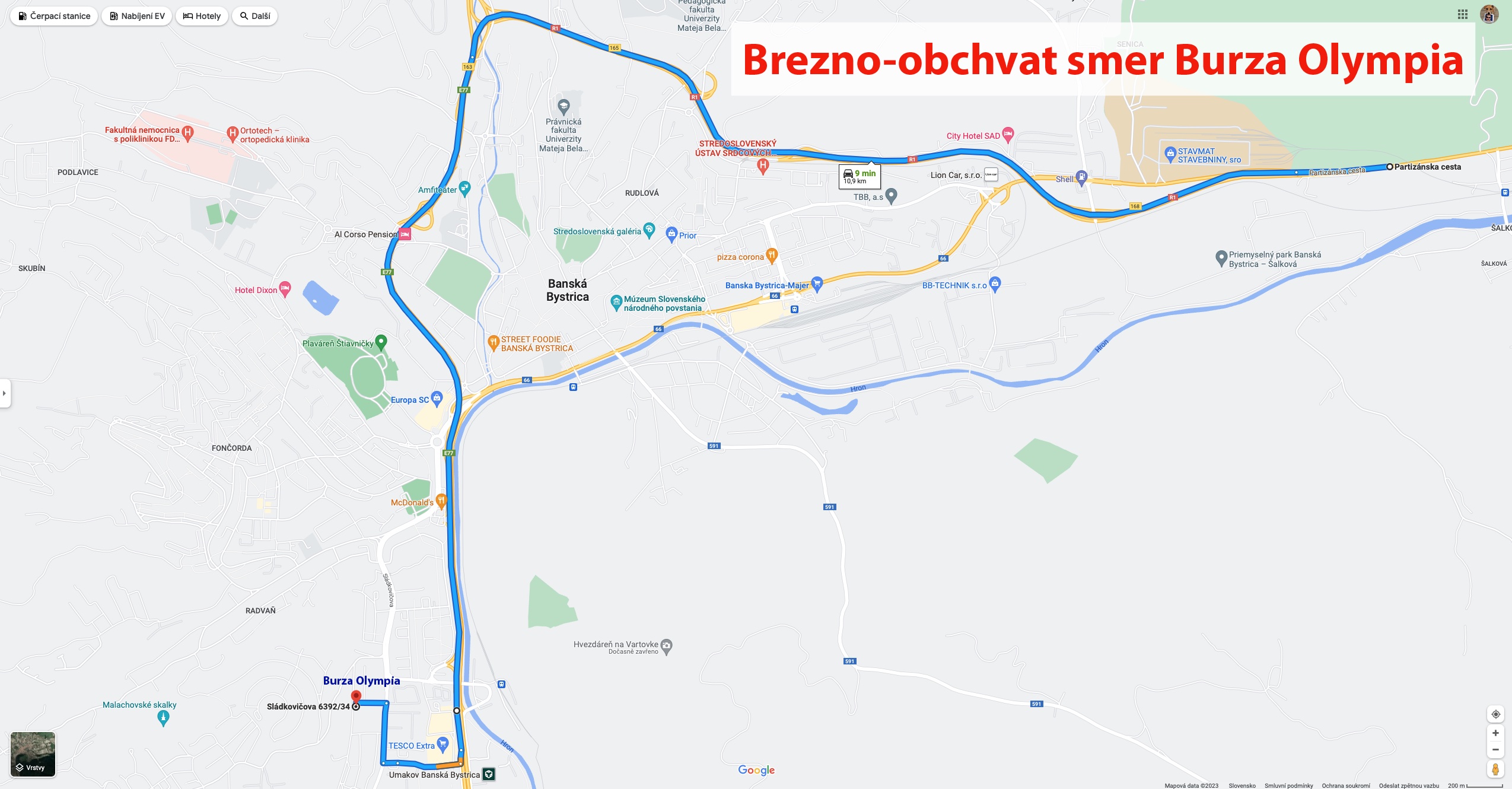 Stručná mapka ako sa dostaneš smerom od Brezna na burzu cez mesto BB