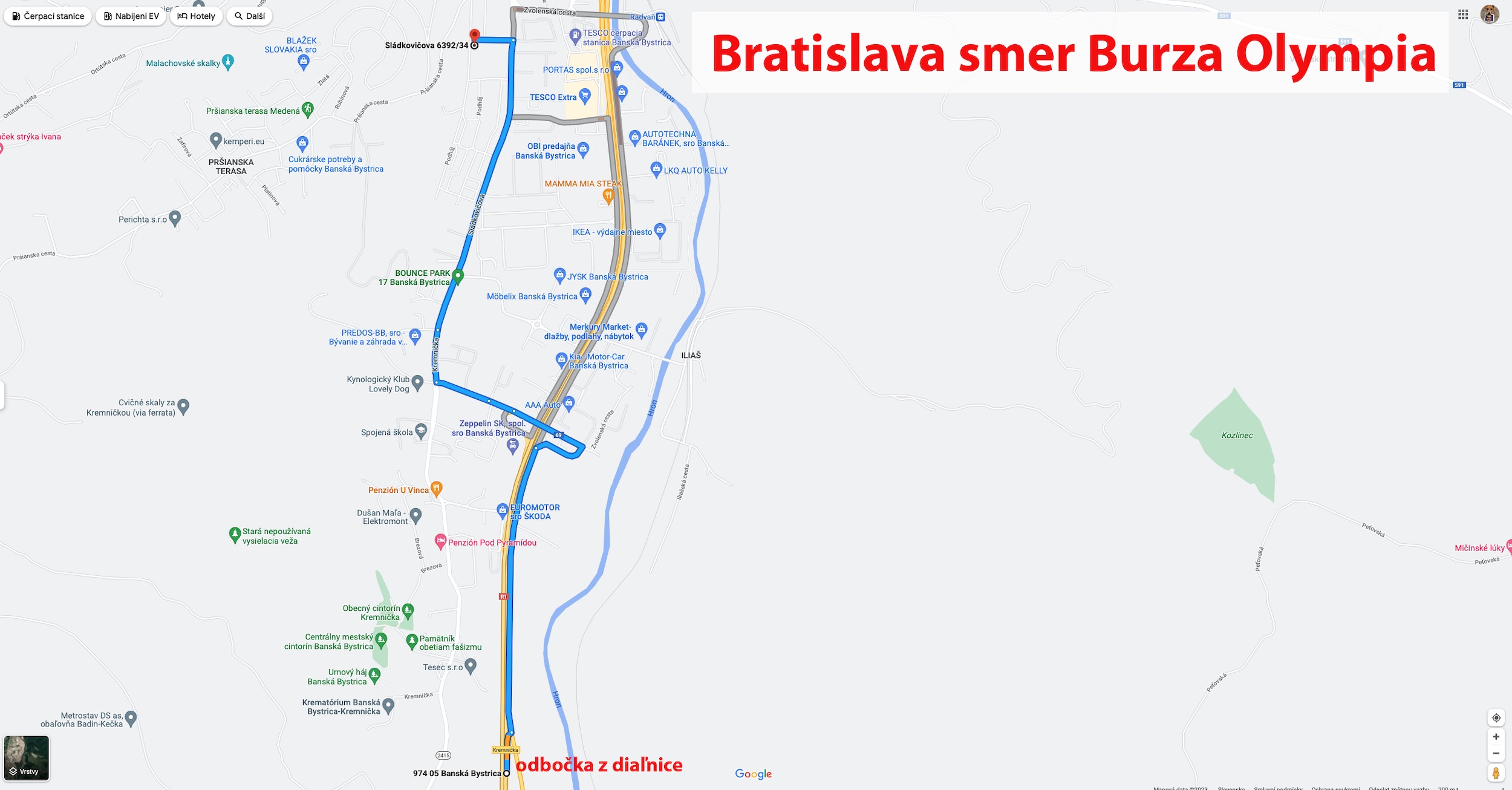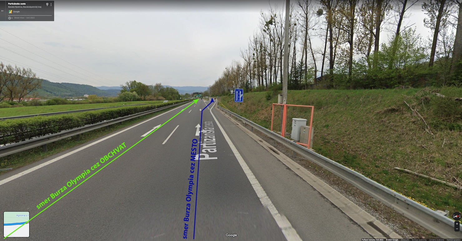Stručná mapka ako sa dostaneš smerom od Brezna cez obchvat BB na burzu.