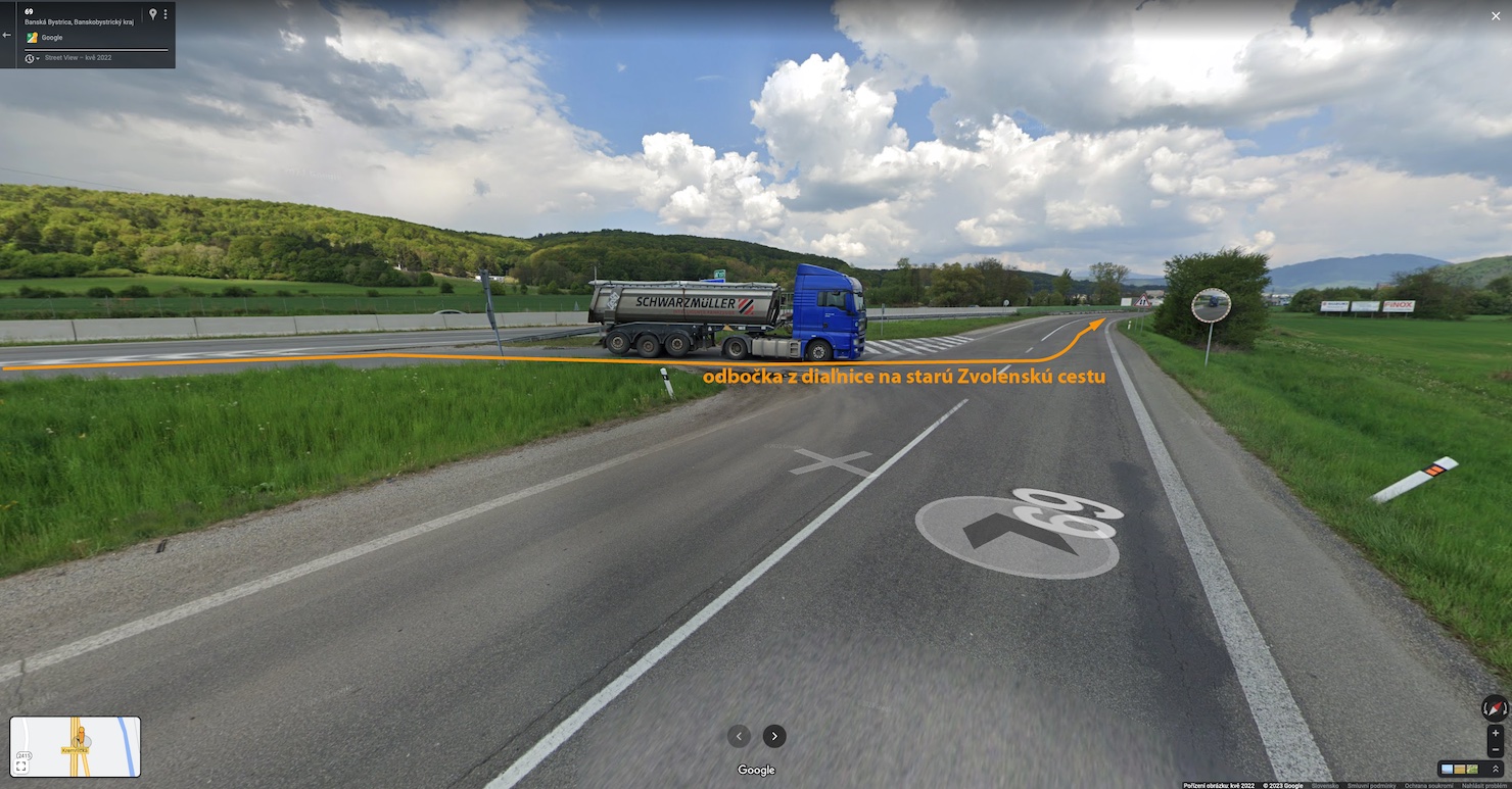 Z výjazdu na križovatke odboč doľava v smere diaľnice do BB. Na križovatke buď opatrný.