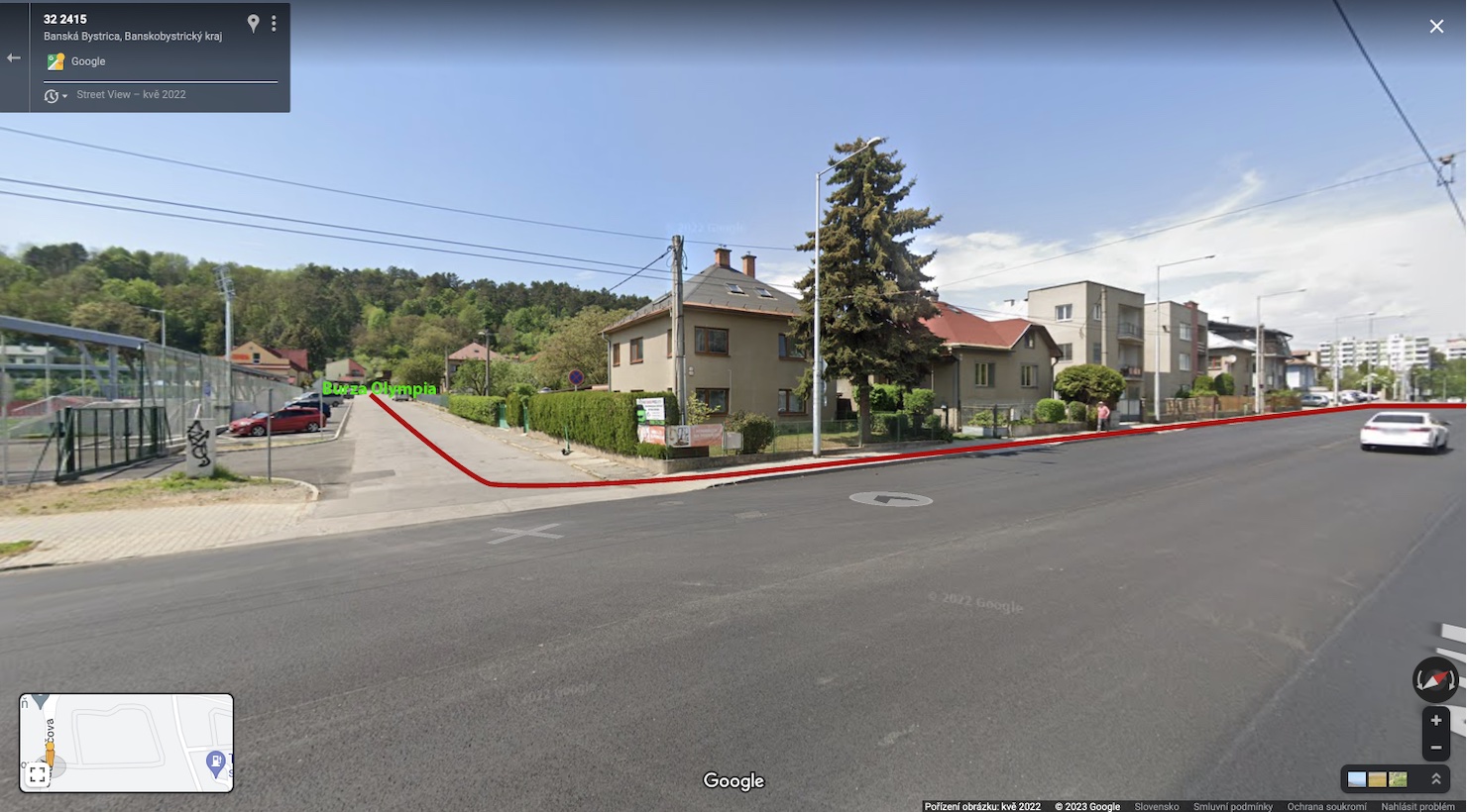 Pred futbalovým štadiónom odbočíš do prava a popri štadióne hore k penziónu Olympia.