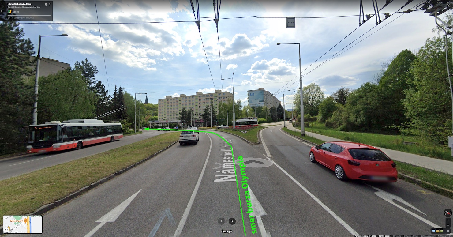 Stále po hlavnej rovno. POZOR tu na MEKÁČ odbočiť nemôžeš 🙂 Plná čiara !