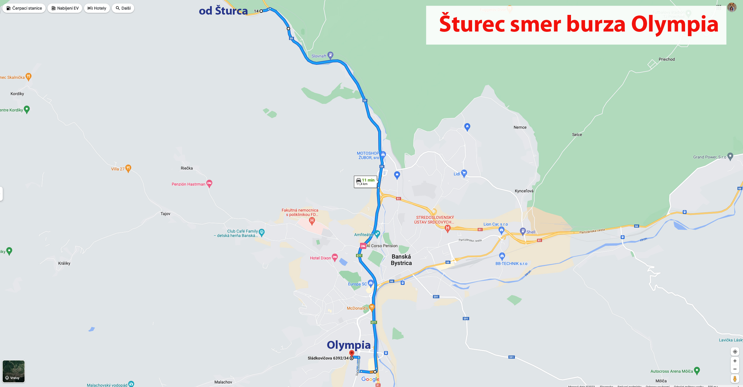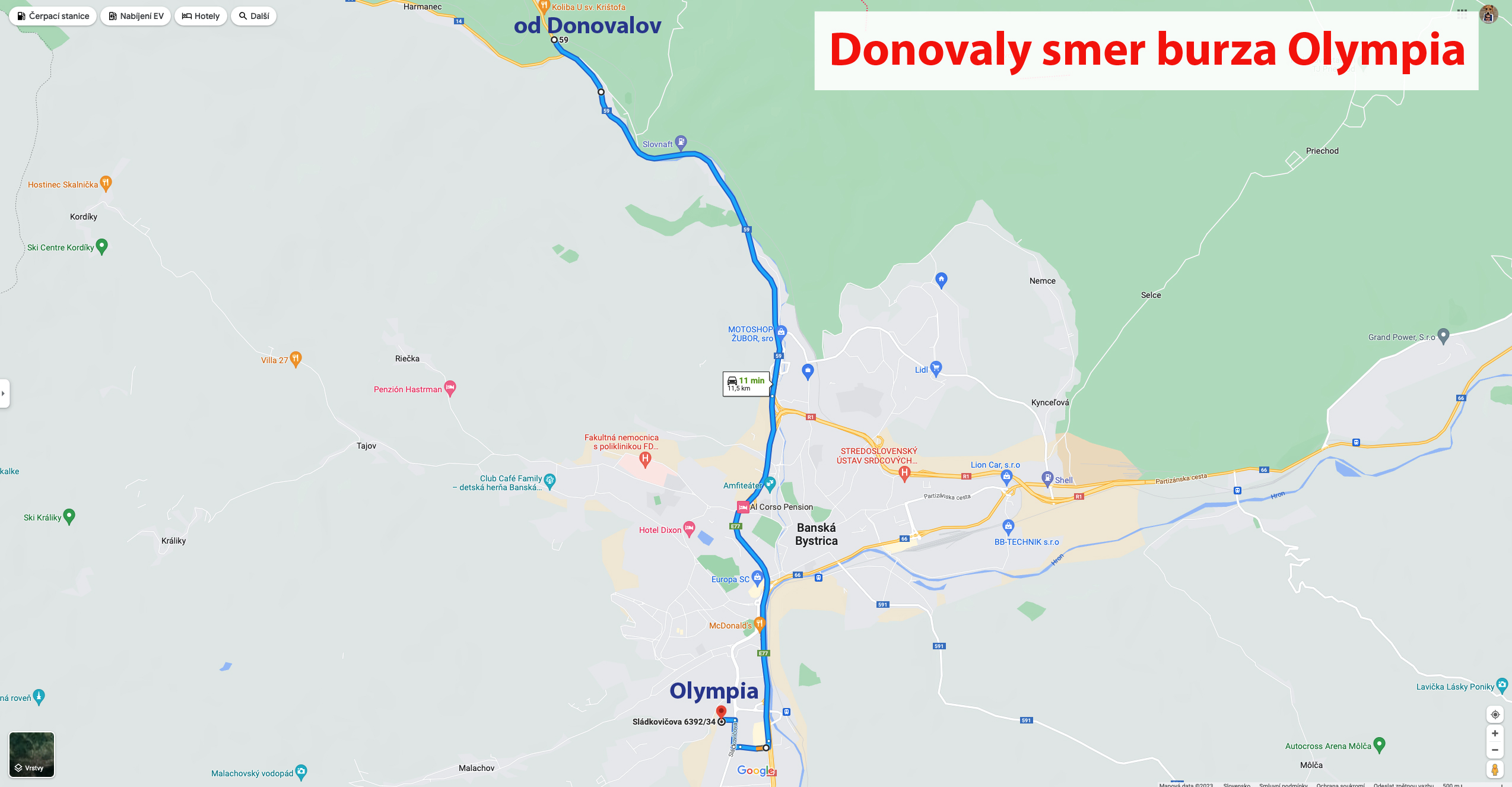 Stručná mapka smerom od Donovalov na burzu Olympia