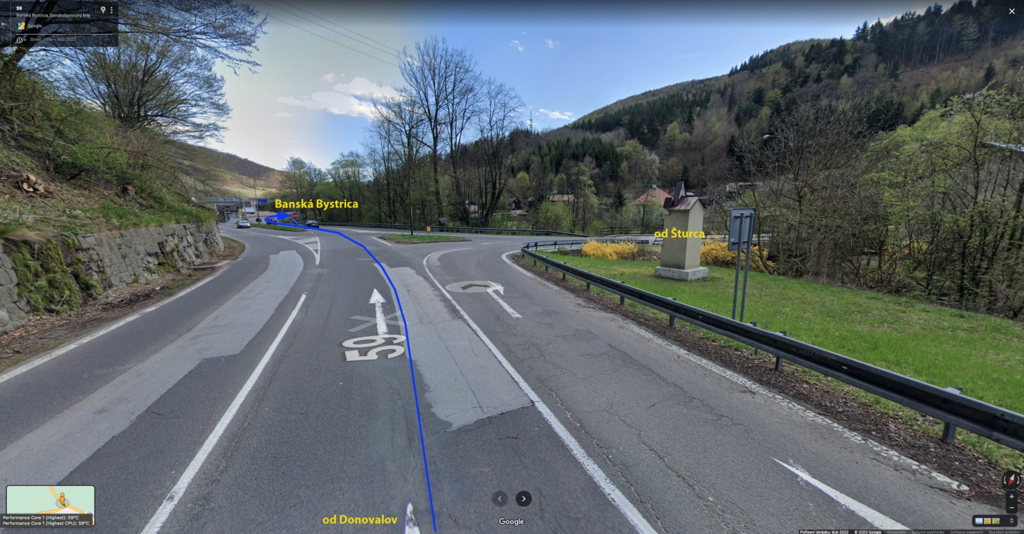 Ak ideš smerom od Donovalov pokračuj rovno po hlavnej ceste v ľavom pruhu. Do pravého sa pripájajú autá prichádzajúce od Šturca. Majú svoj pripájací pruh tak sa nezľakni. Po cca 100 metrov sa môžeš preradiť do pravého pruhu. Odbáčať nebudeš najbližších cca 13 kilometrov.